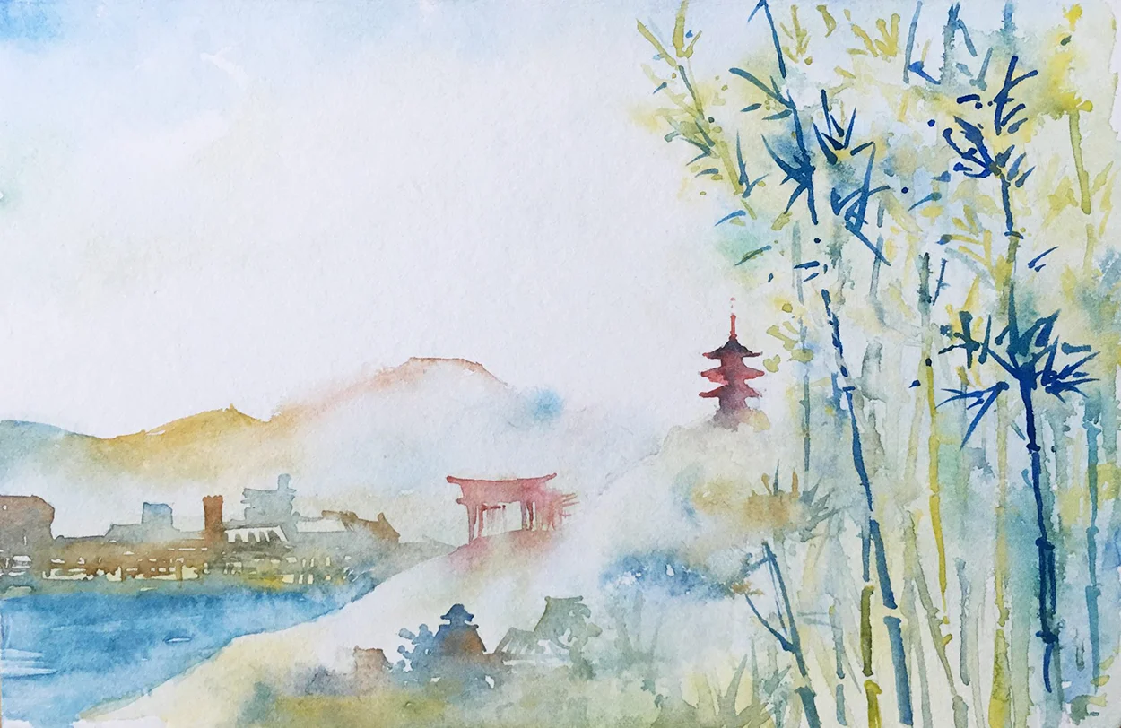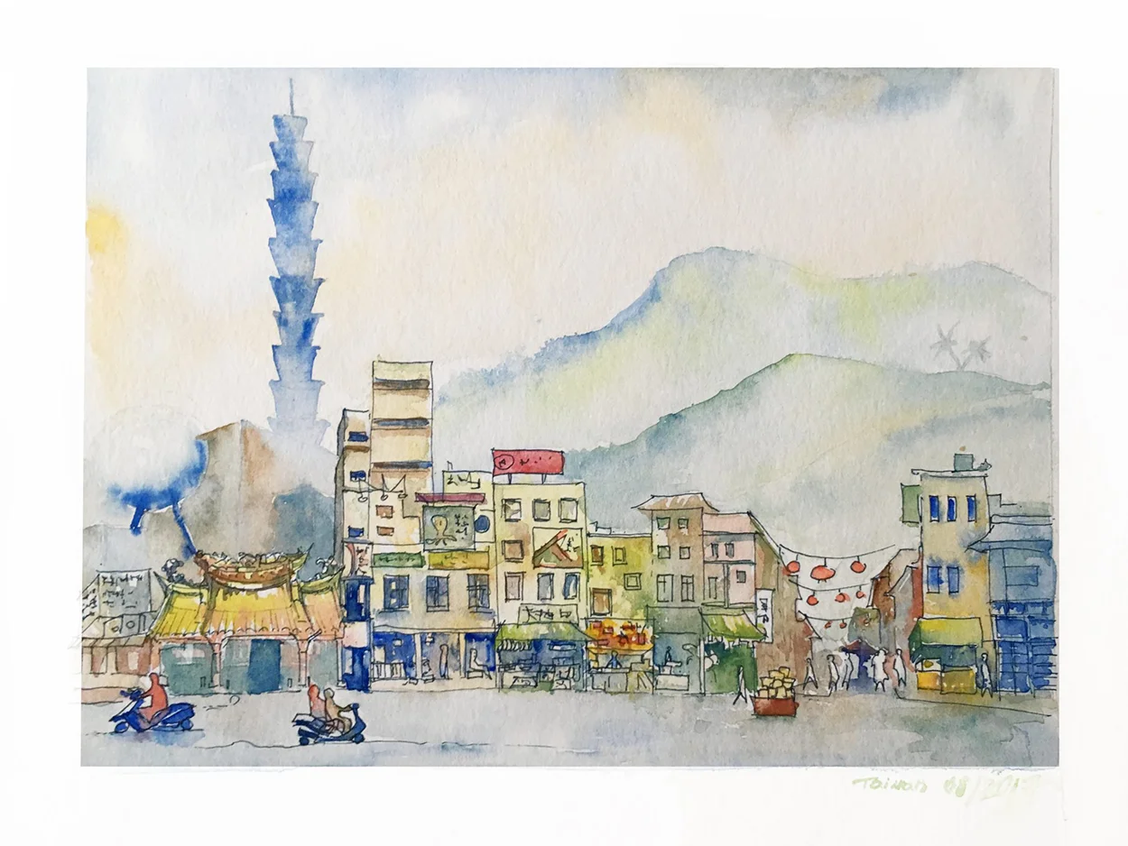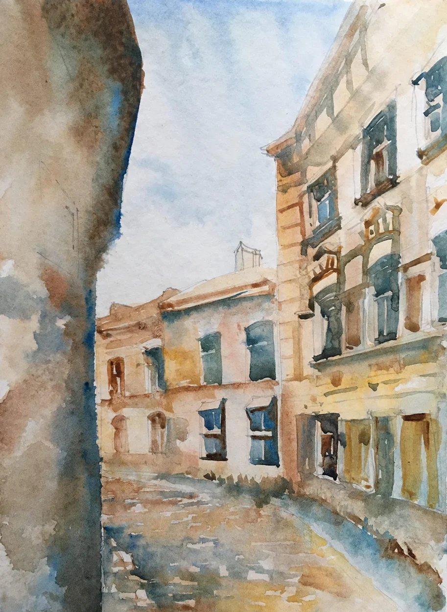 Şimdiye kadar sayısız anı biriktirdik; her biri kendi hikâyesiyle özel. Yolculuklarımız sırasında zaman buldukça — ve ortam uygunsa — Kasia suluboya takımını çıkarıp sessizce çizimlerine dalıyor. Ortaya çıkan işler bazen bir binanın detaylarını, bazen bir sokak lambasının gölgesini, bazen de bir ülkenin ruhunu yansıtan simgeleri bir araya getirdiği renkli kompozisyonlar oluyor. Bazen o anda yaşadığımız bir hissi, bazen de gözümüzden kaçan detayları onun fırçasında fark ediyoruz.
