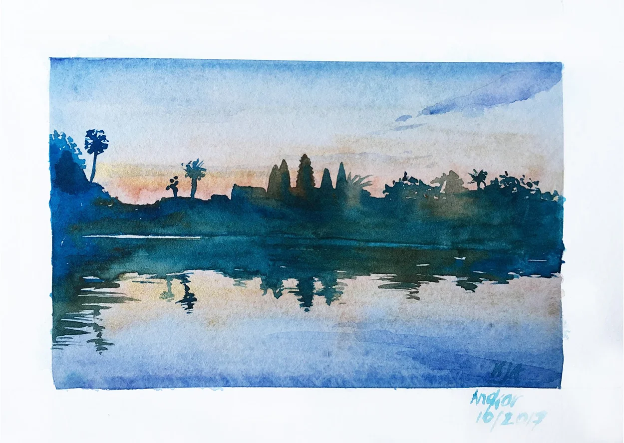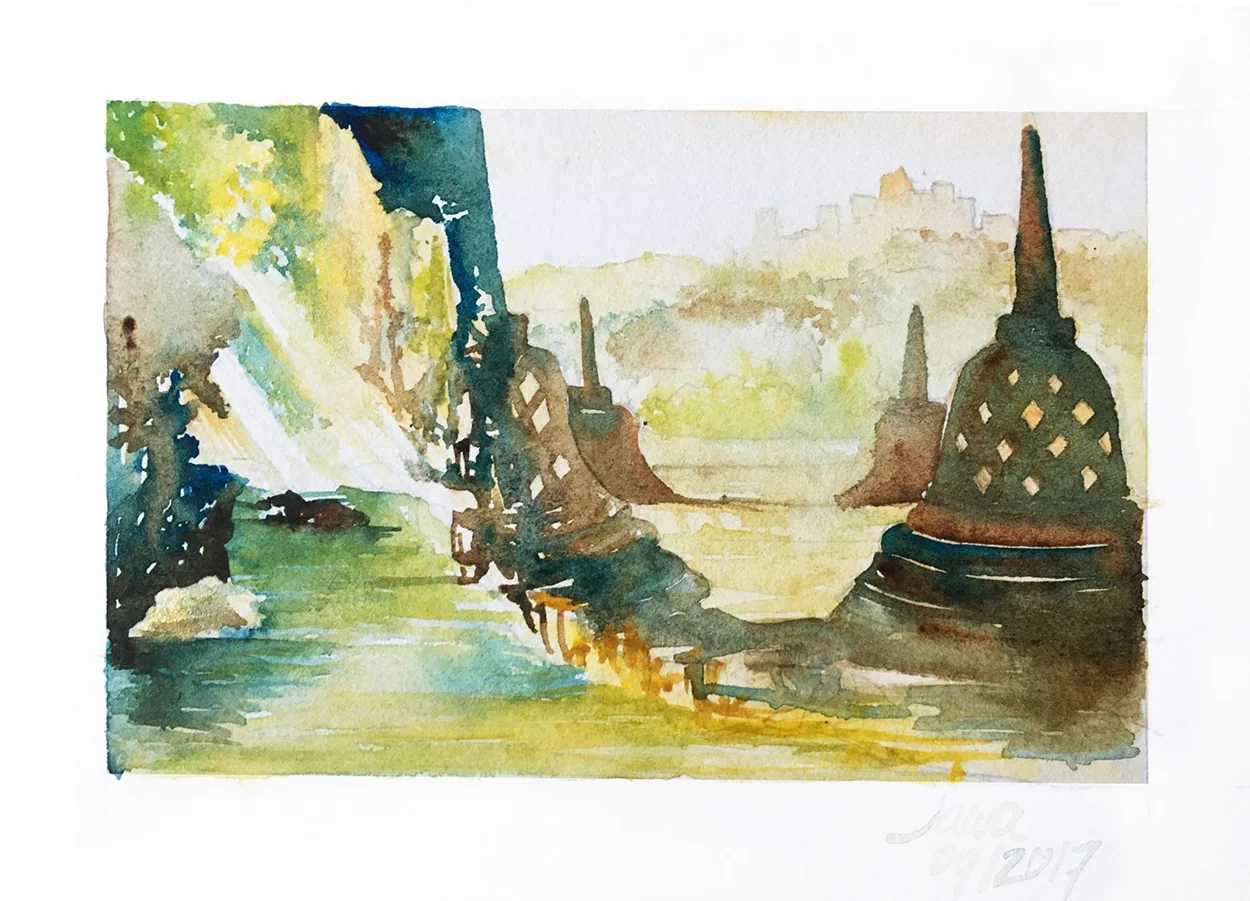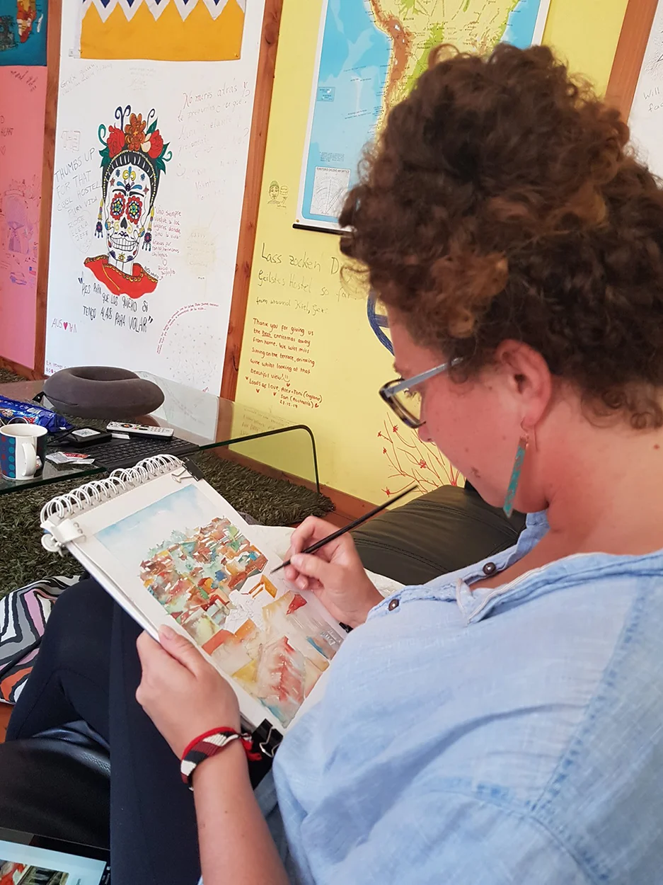 Kasia yetenekli bir insan. Daha bu seyahate çıkmadan önce “Dünya turumuzda kişisel projelerimiz olsun” diyorduk. O da ilk günden itibaren fırçasını yanına alıp gözümüzle gördüğümüz yerleri kendi yorumuyla kâğıda aktarmaya başladı.