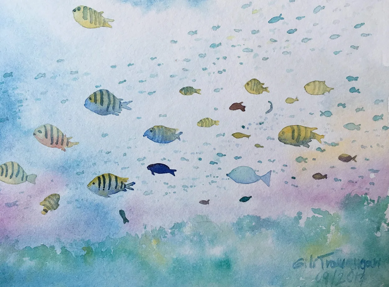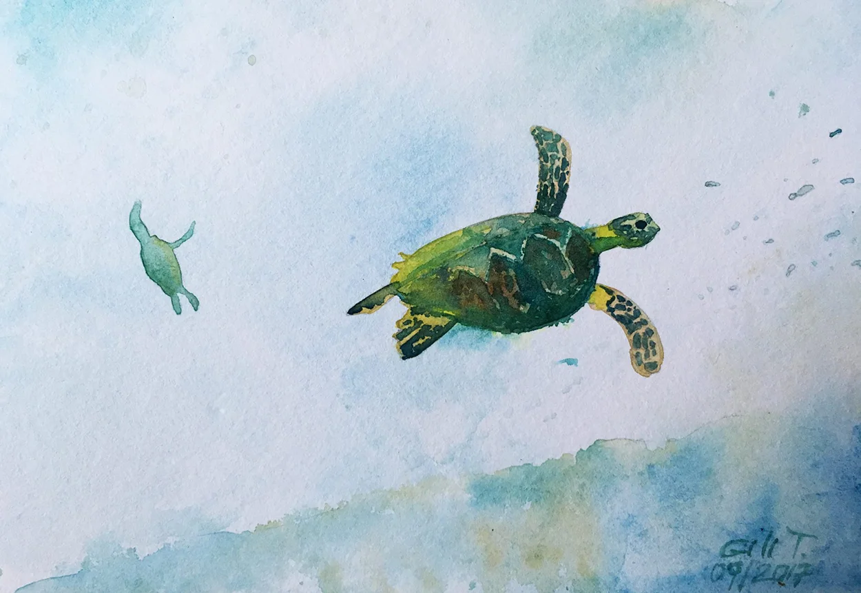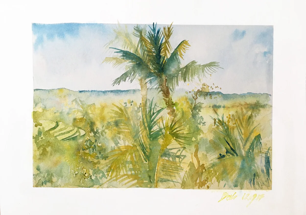 Kasia yetenekli bir insan. Daha bu seyahate çıkmadan önce “Dünya turumuzda kişisel projelerimiz olsun” diyorduk. O da ilk günden itibaren fırçasını yanına alıp gözümüzle gördüğümüz yerleri kendi yorumuyla kâğıda aktarmaya başladı.
