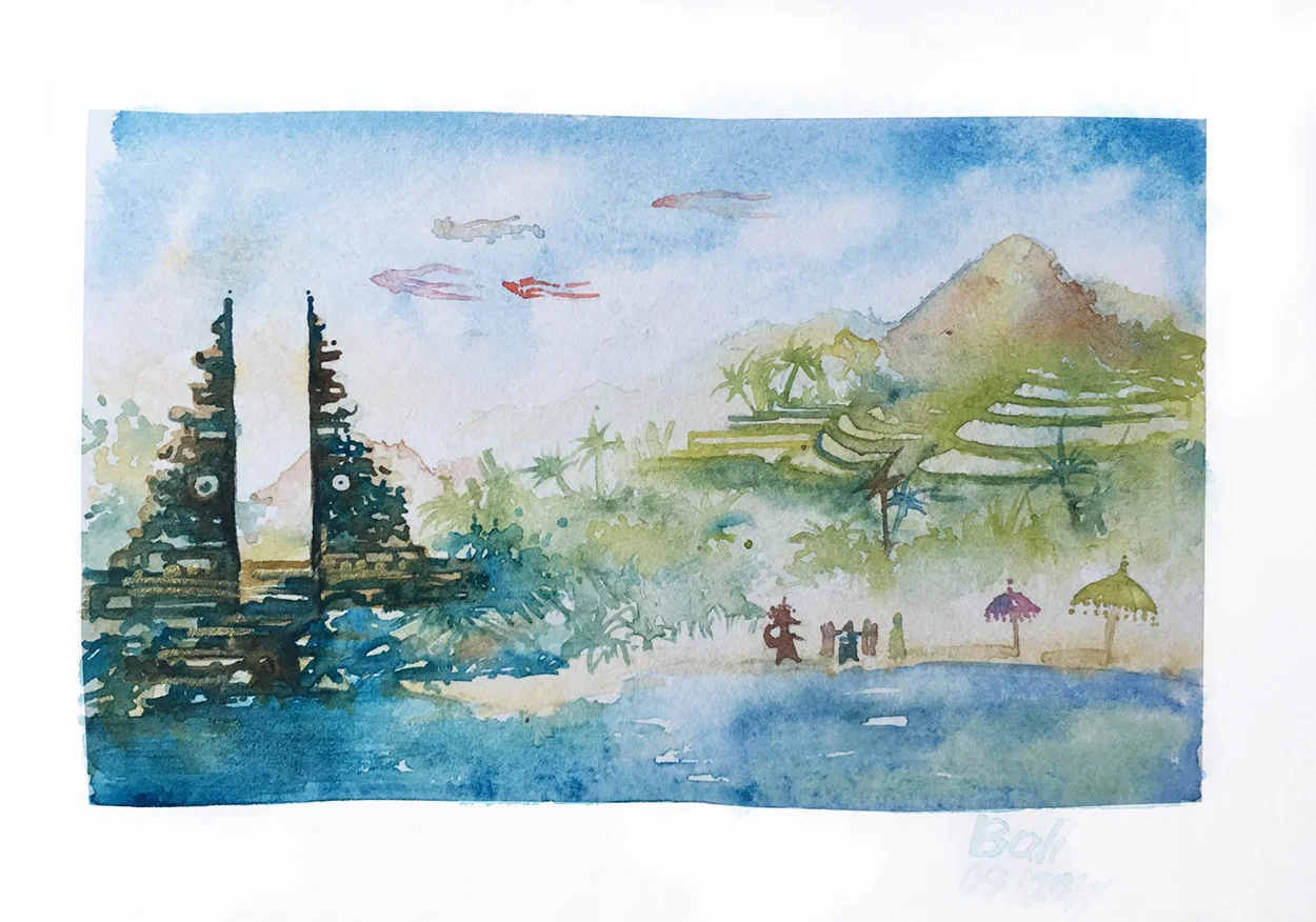 Her resim hem bir anı, hem de o anın duygusunu saklayan bir tür görsel günlük gibi. Aşağıdaki galeride, seyahatimiz boyunca Kasia’nın elleriyle çizdiği ve renklendirdiği bazı çalışmaları görebilirsiniz. Belki siz de bir gün, bir defter ve biraz boya alıp kendi yolculuğunuzu çizmeye başlarsınız. 🌍🎨